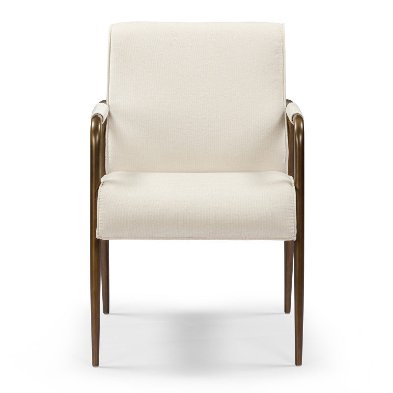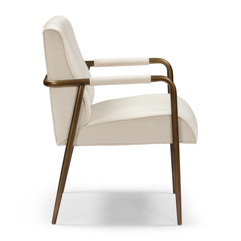 The chair's sleek bronze-style angular frame adds a contemporary edge, making it a standout addition to any modern interior.