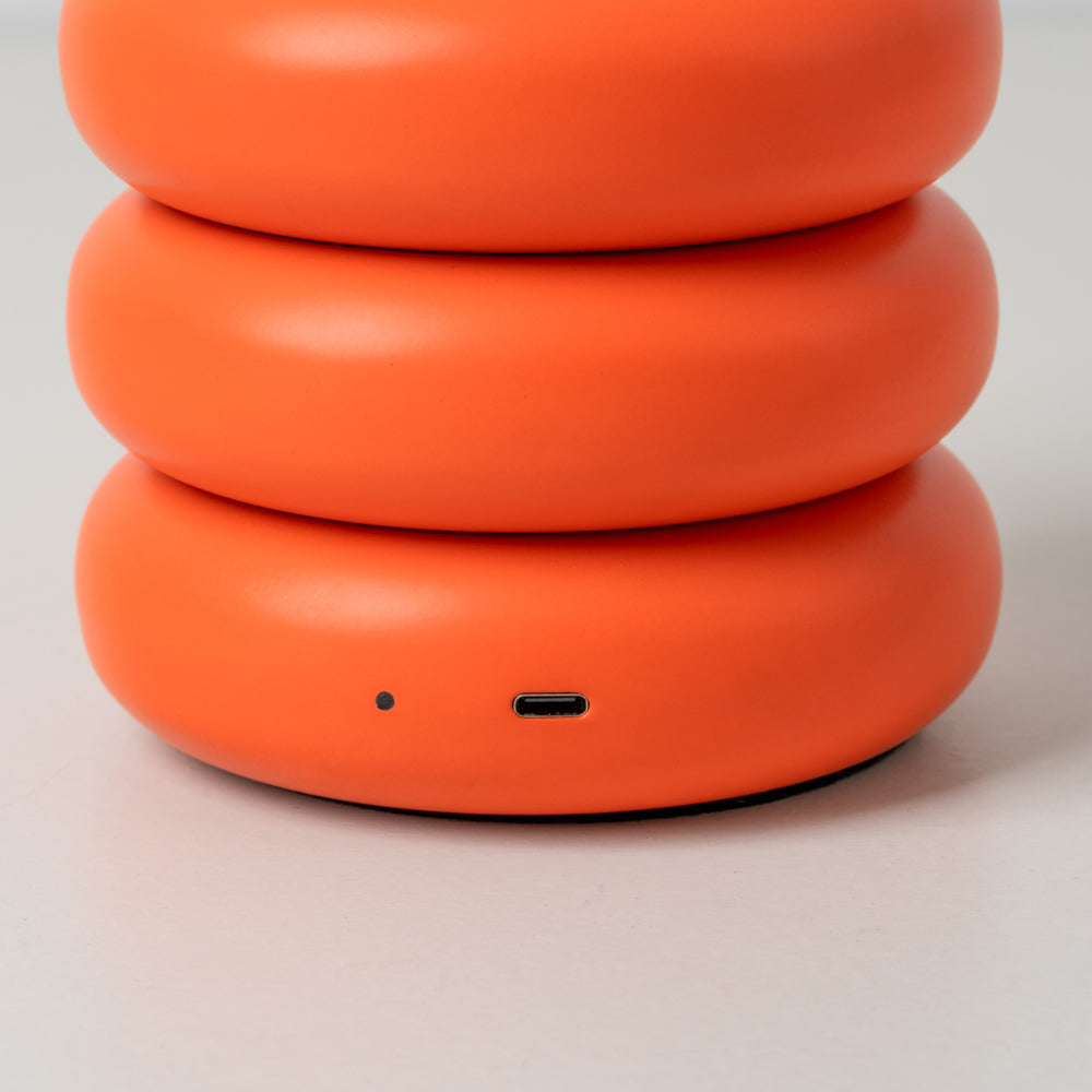 With its cylindrical silhouette and bold orange finish, this lamp makes an instant impact. Place it anywhere—on shelves, side tables, or as a centrepiece on your dining table—without the hassle of cables. Its cordless design gives you complete flexibility, making it the ultimate mood-setter wherever you need it.