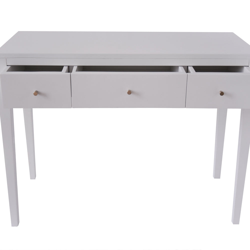 Bring a touch of elegance and practicality into your home with the Aston Three-Drawer White Console Table. Perfect for any room that needs a stylish storage solution.