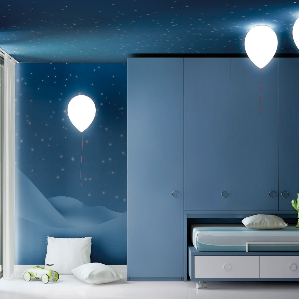 Design and Material: The Balloon Wall Light features a shade made from satin-finished translucent polyethylene, offering a soft, diffused glow that creates a warm and inviting atmosphere. Its playful balloon shape sparks imagination, making it an ideal choice for children’s rooms.