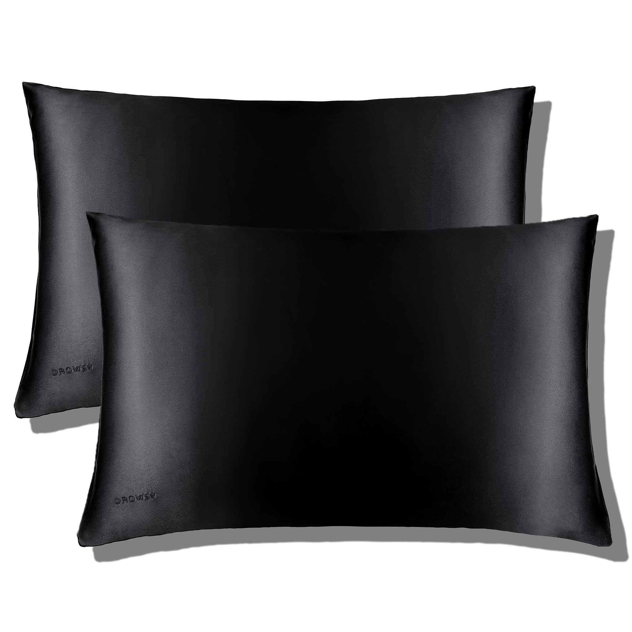 100% washable. Elevate your sleep to the next level with this Drowsy black silk pillow case. The cult favourite of beauty editors, silk reduces the friction that causes long term damage to hair and skin. This heavenly black silk pillowcase glides over skin making bedtime irresistible.