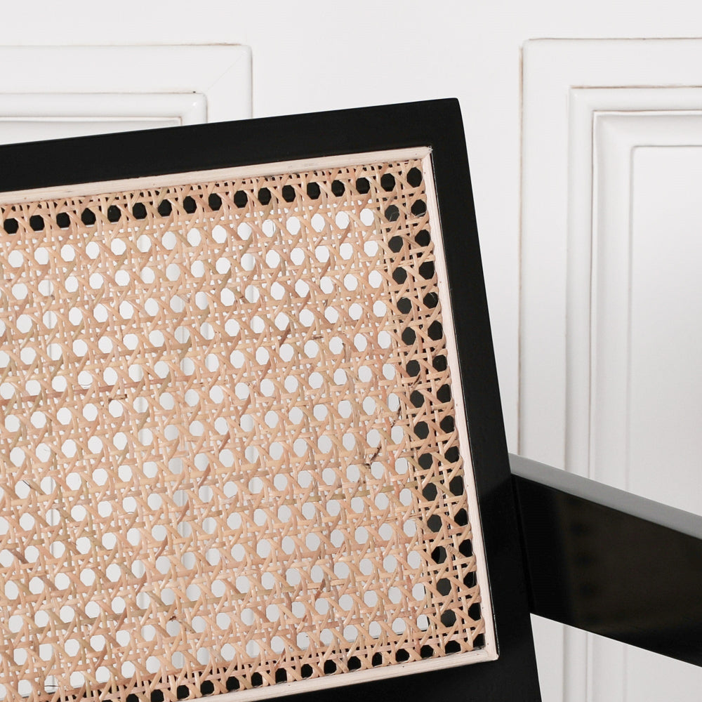 Introducing our Black Painted Wooden Cane Dining Chair – a design masterpiece meticulously handcrafted from high-quality beech wood with a stylish rattan seat and backrest.