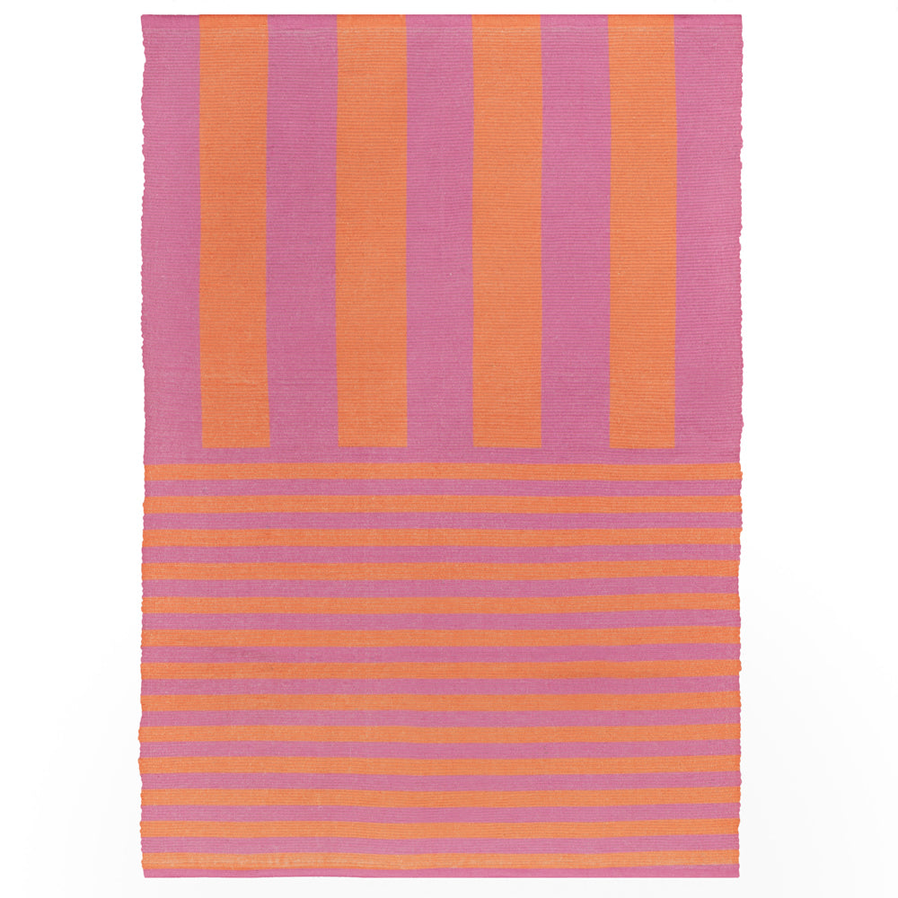 Add a pop of vibrant colour and modern design to your space with the Deck Stripe Printed Indoor/Outdoor Rug in Orange/Pink. This versatile flatweave rug features dynamic stripes in bold, contrasting colours, perfect for creating a statement look in both indoor and outdoor settings.