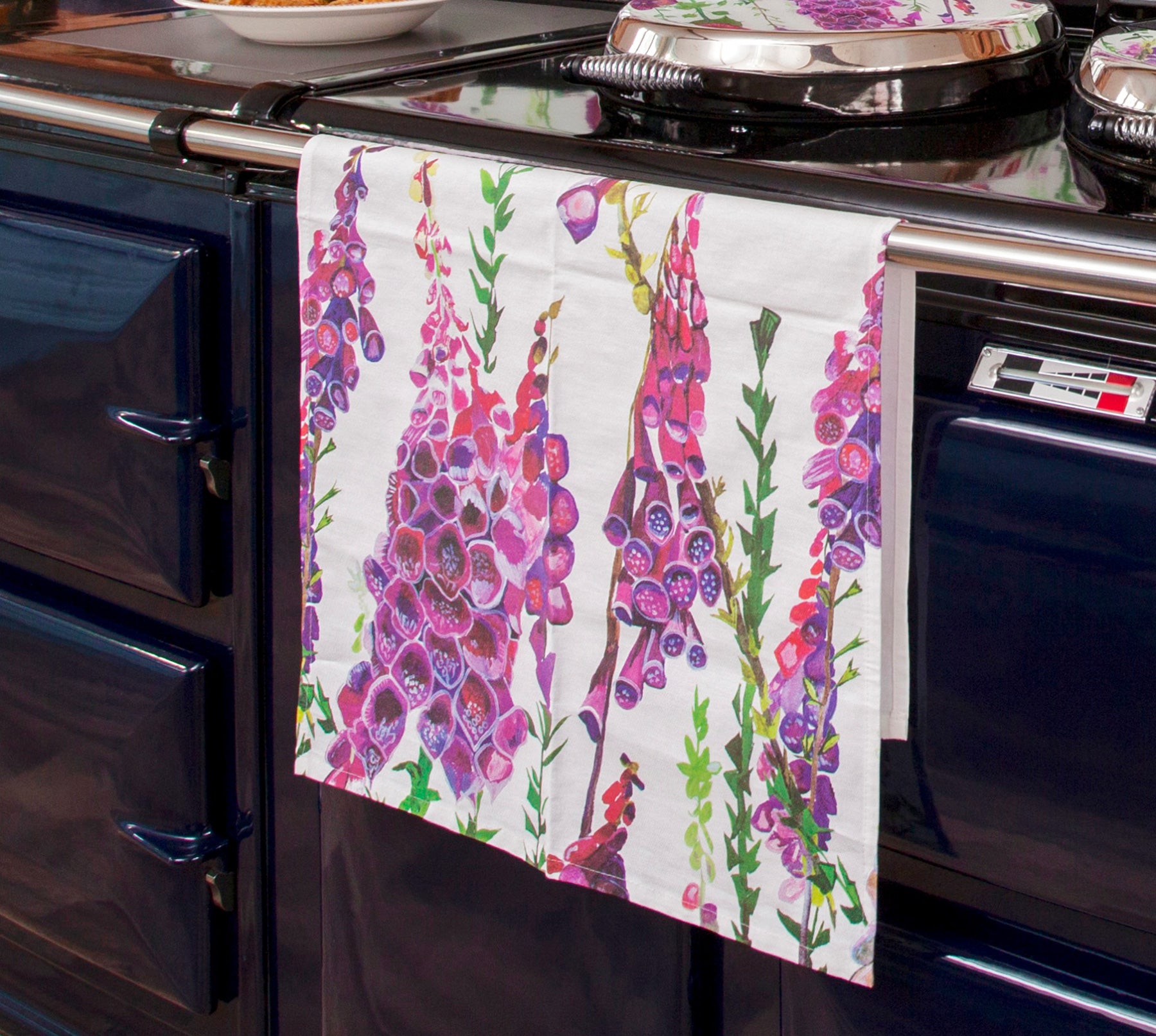 Bring a touch of botanical charm to your kitchen with the Foxglove Tea Towel by Emma Britton. Featuring a statement hand-painted Foxglove design, this designer tea towel is screen printed onto 100% cotton in Britain and beautifully packaged with jute string and a swing tag, making it an elegant gift or a stylish addition to your own home.