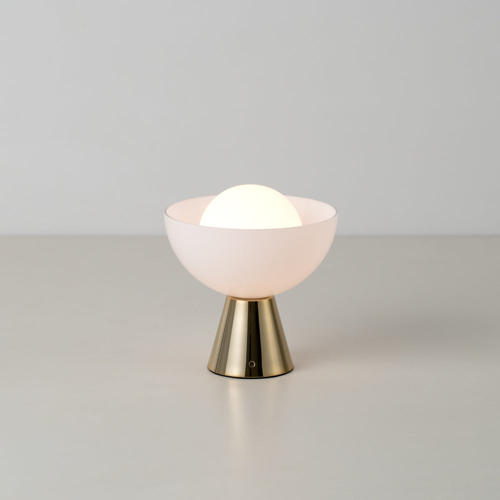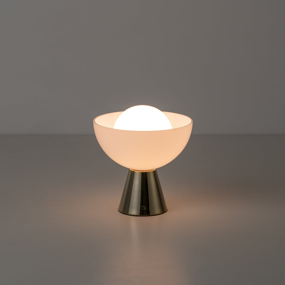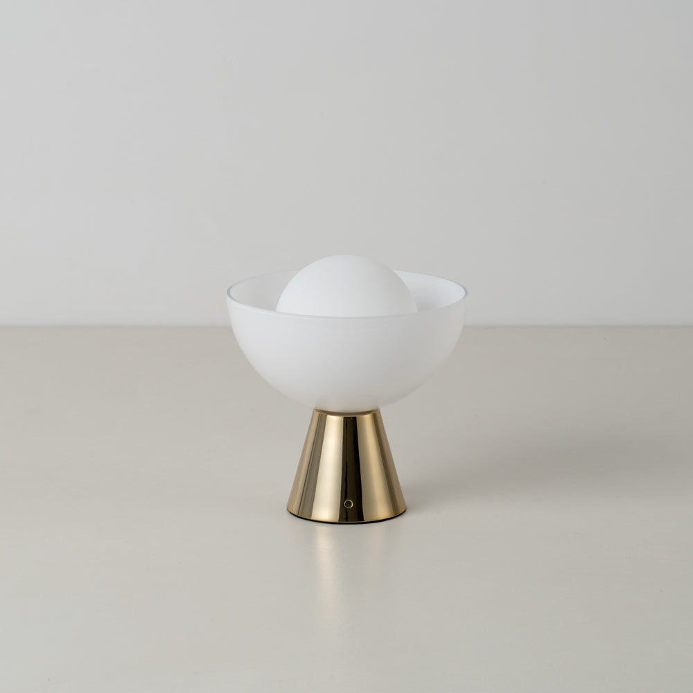 The glowing opal glass shade is nestled within a smooth milky glass bowl and rests atop a polished brass base, creating a striking yet refined contrast. Fully charged in just 3.5 hours, it’s the perfect companion for living rooms, bedside tables, or outdoor settings, wherever you need a touch of warm, portable light.