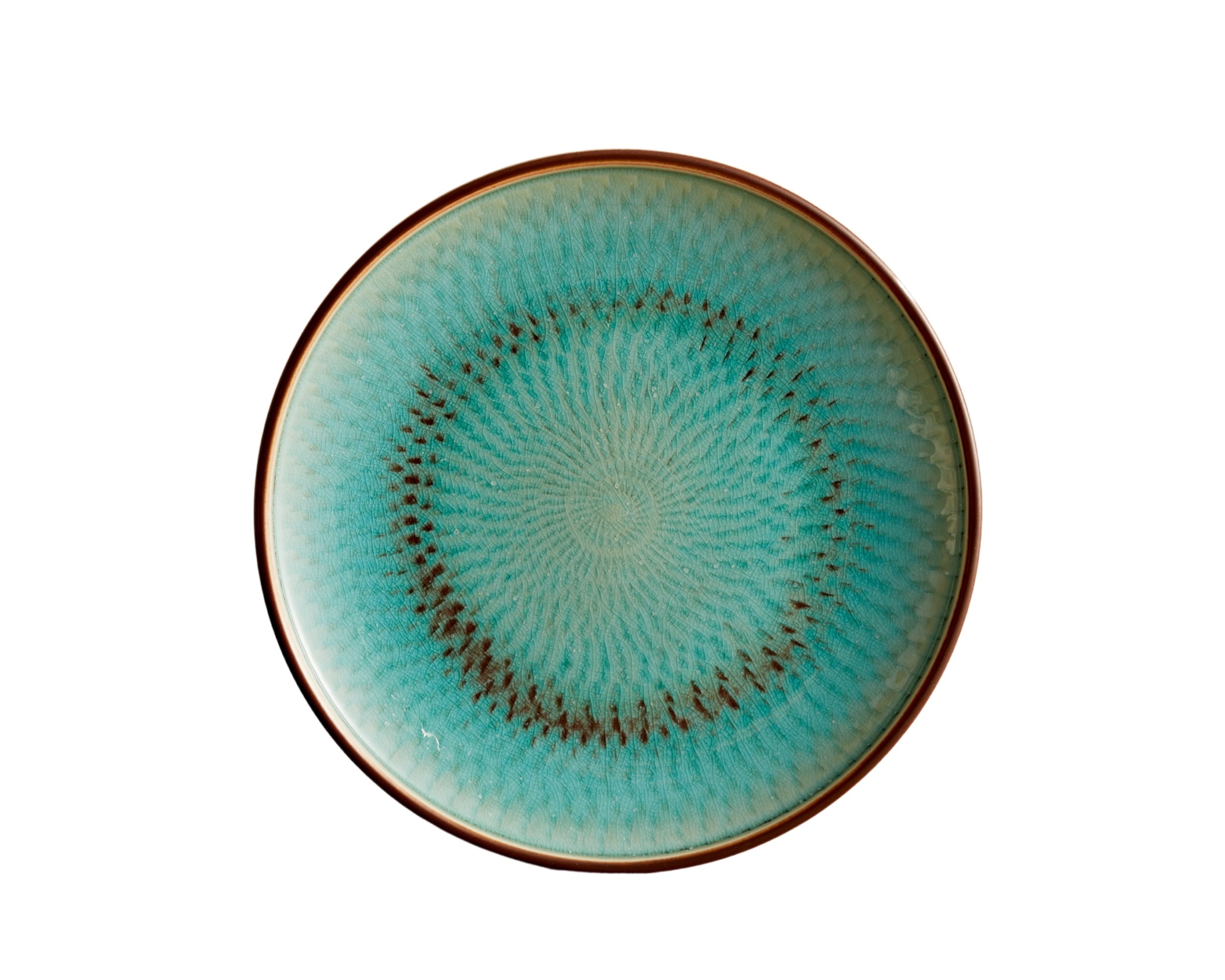 The Josephine Porcelain Round Starter Plate in light blue blended with touches of earth tones come to life using traditional handmade techniques of molding and the finest quality of clay resulting in a hard, non-porous, scratch resistant, and very strong tableware that preserves the colour over time.
