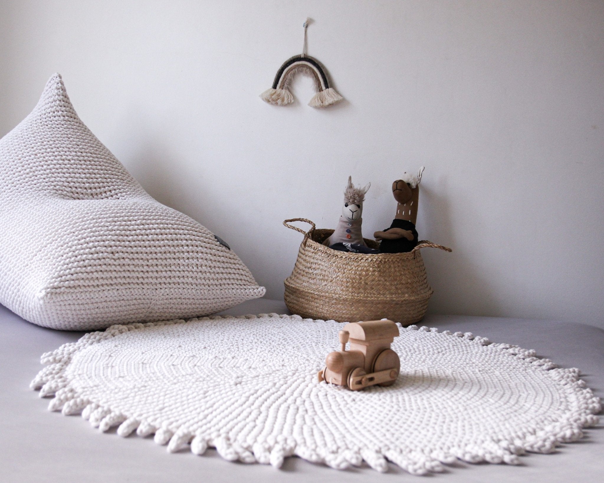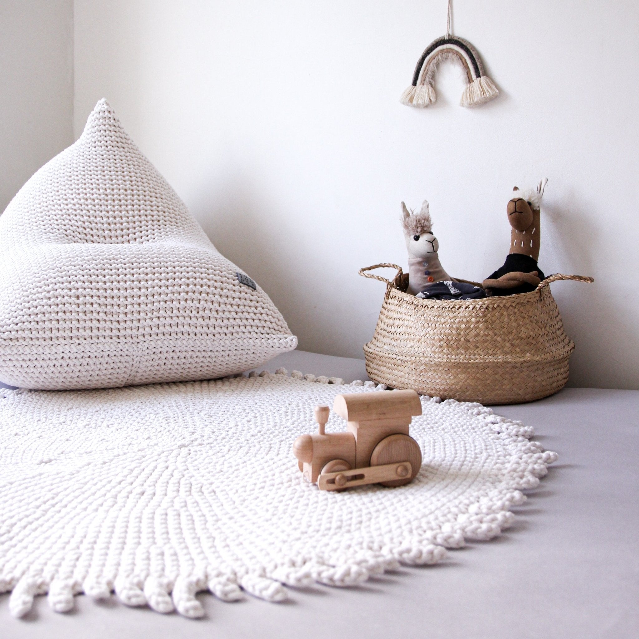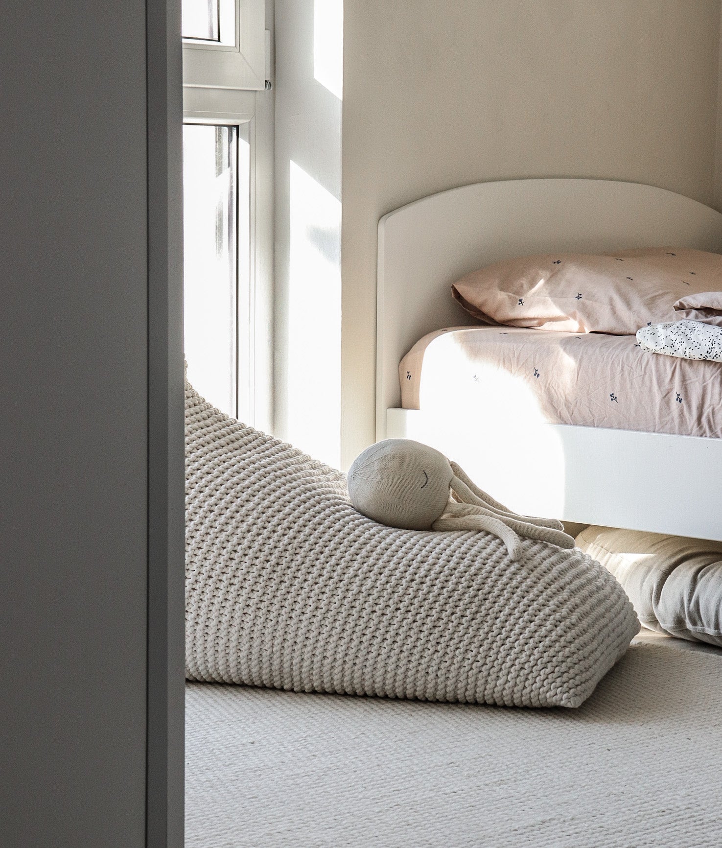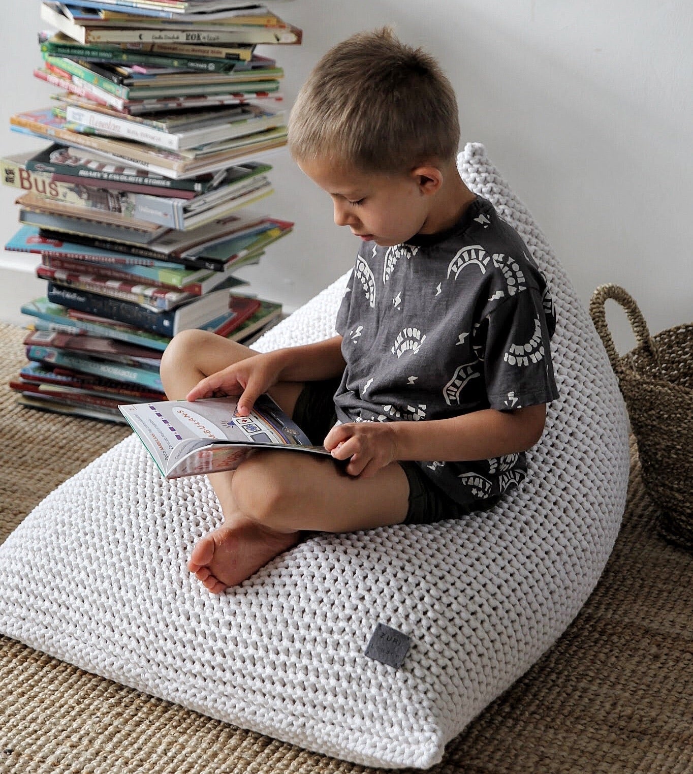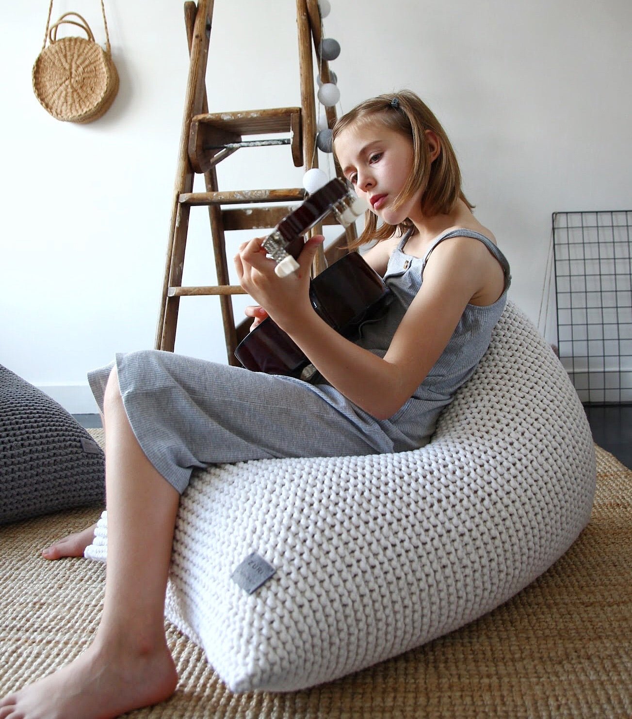 Hand-knitted ivory cotton bean bag for kids – soft, durable & washable