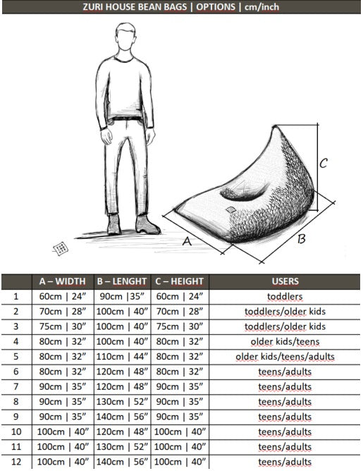 • Inner bags are fitted with child-safe zippers to prevent unauthorised access to polystyrene beads, reducing the risk of accidents.