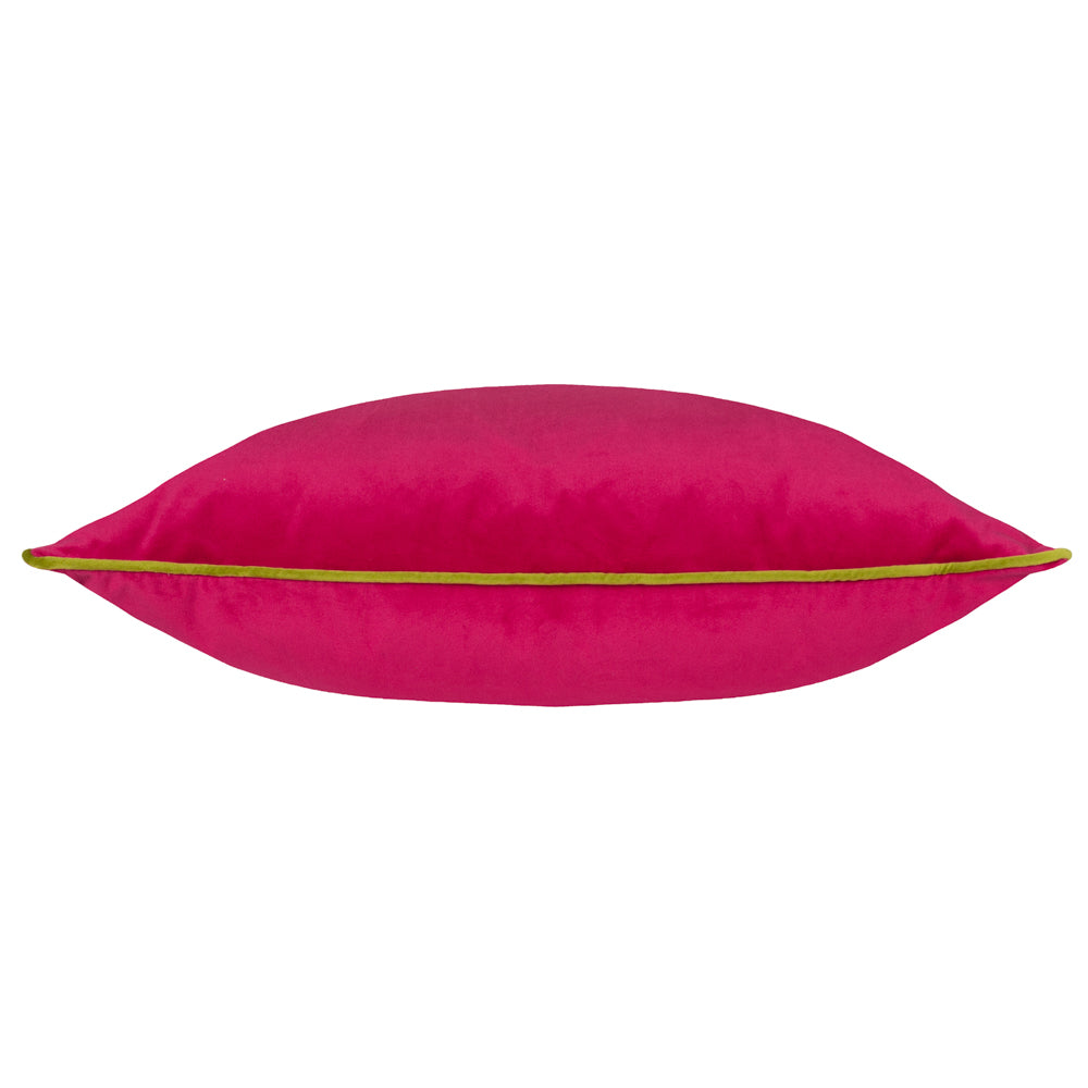 Vibrant and playful, the Meridian Velvet Cushion in Hot Pink/Lime is a bold statement piece designed to bring energy and personality to any space. The rich hot pink velvet base is strikingly contrasted by a zesty lime piped trim, creating a dynamic and contemporary look. Generously filled with a feather-rich insert, this cushion offers luxurious comfort and plush support, making it a stylish addition to a sofa, bed, or accent chair. A discreet zip closure ensures easy care, blending practicality with standout design.
