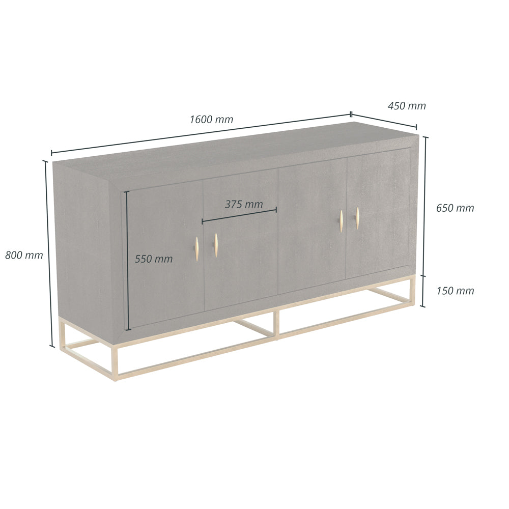Add a luxurious and functional touch to your home with the Metro Four-Door Sideboard in brown faux shagreen, a statement piece that is both practical and stylish.