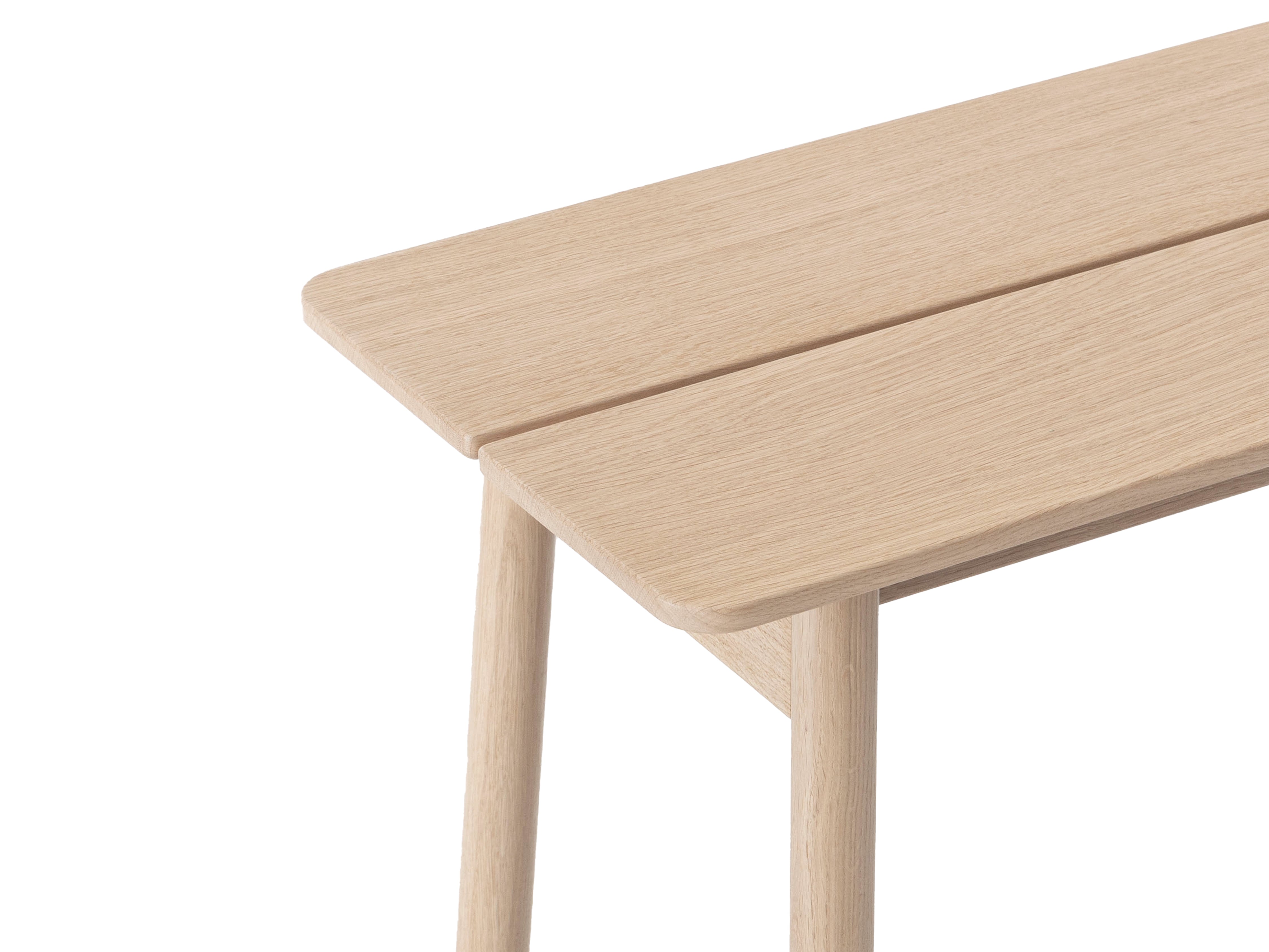 Crafted from two wide staves of hand-selected European Oak, the bench top is finished in hard-wax oil, enhancing the grain while offering a durable, low-maintenance surface that can be easily refreshed over time.