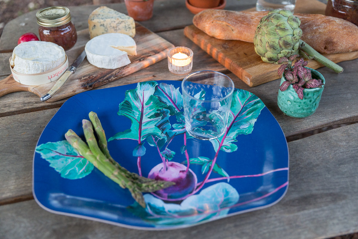 Bring a splash of garden-inspired charm to your table with the Large Gardener’s Tray, designed especially for kitchen gardeners. Showcasing Emma Britton’s original hand-painted Kohl Rabi design in a striking, organic pattern, this generous tray is perfect for carrying food and drinks from kitchen to garden in effortless style.